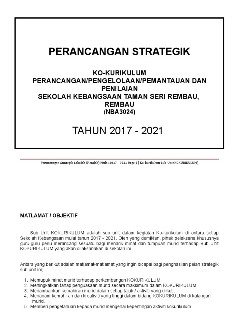 Pdf Pelan Perancangan Strategik Bidang Ko Kurikulum 2016 2020 Fouzi Arshad Academia Edu